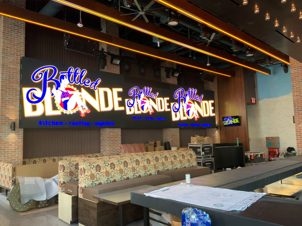 BOTTLED BLONDE Titan Systems completed this $56 Millon dollar job on 1.5 acres. 20,000 Sq foot restaurant / bar. 3 story building. Ground up job, turnkey all Electrical, Low Voltage, Fire Alarm, and Single Line. ← Central Plant @ Strat Atomic Golf →